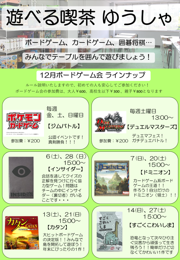 今月は以上になります!イベント以外にもぜひボードゲーム、カードゲームを遊びにお越しください~!!