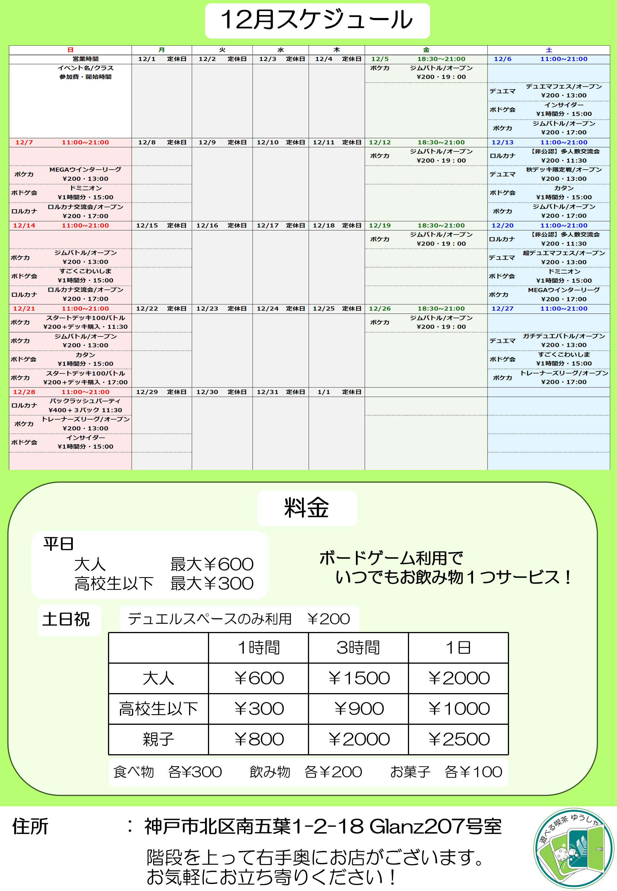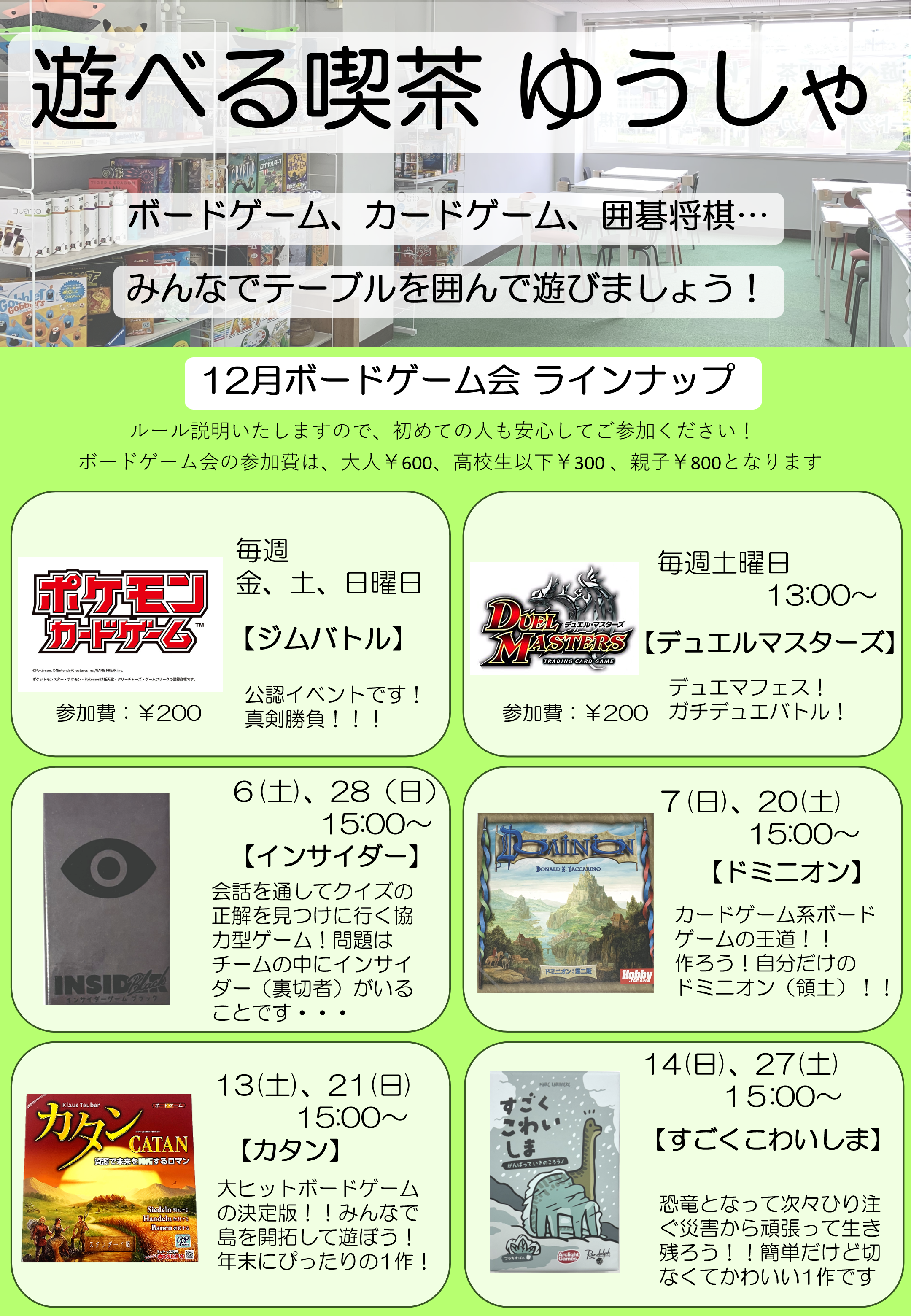 12月営業予定のお知らせ~イベントのお知らせと新ボードゲーム~